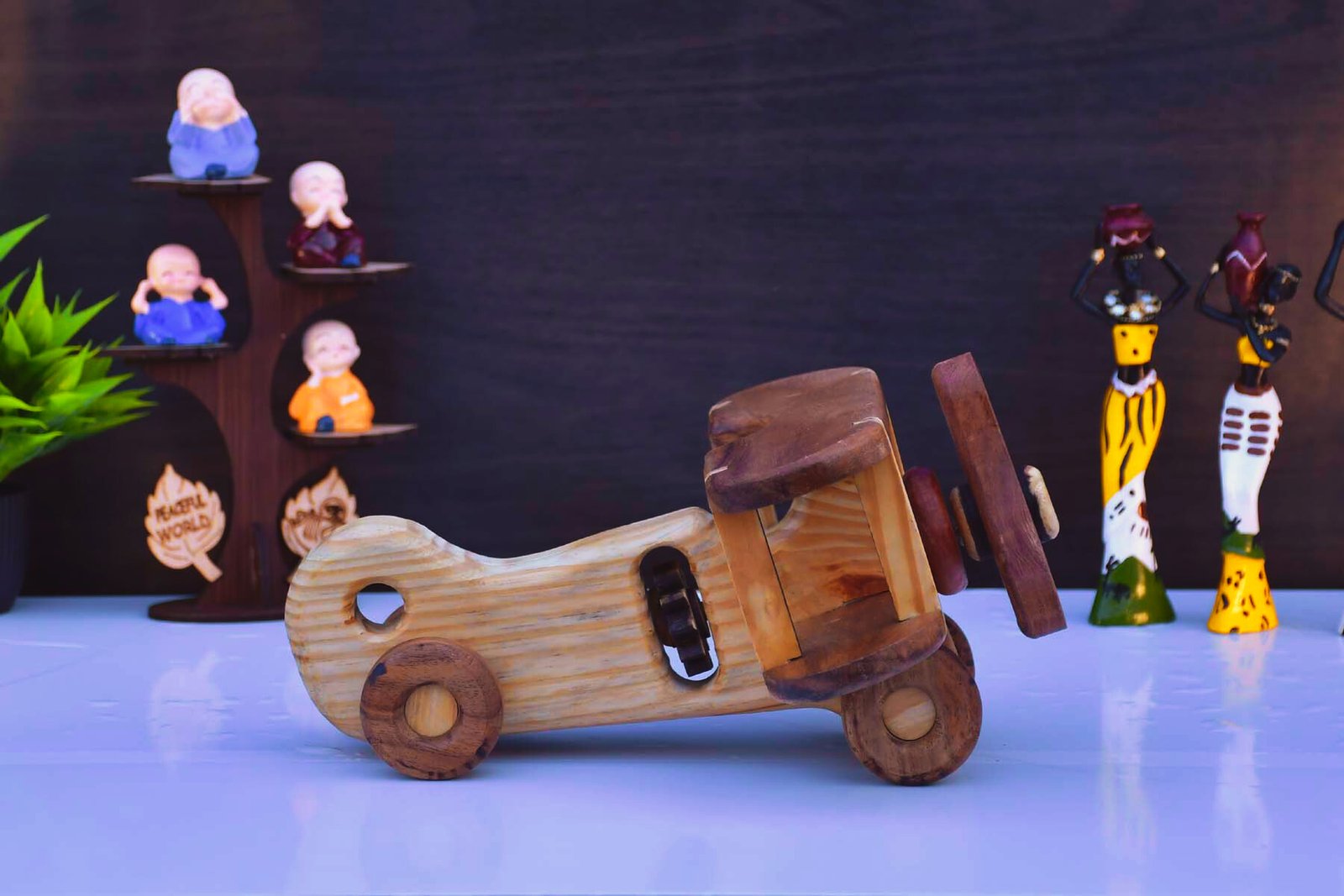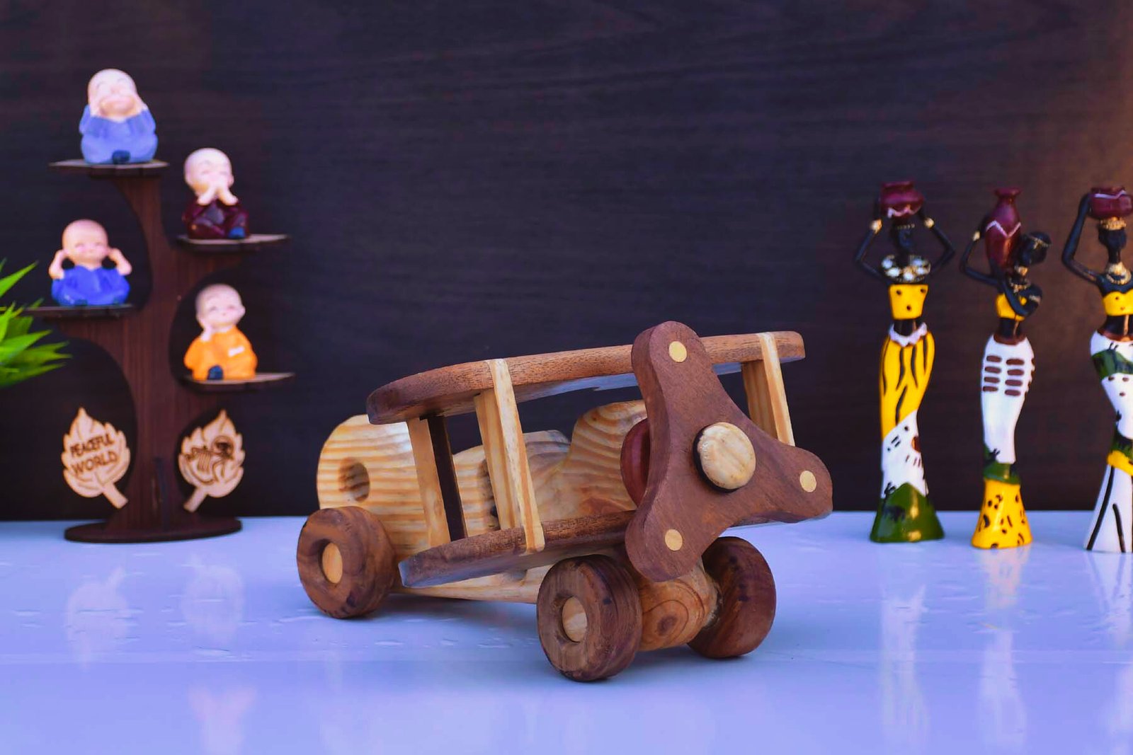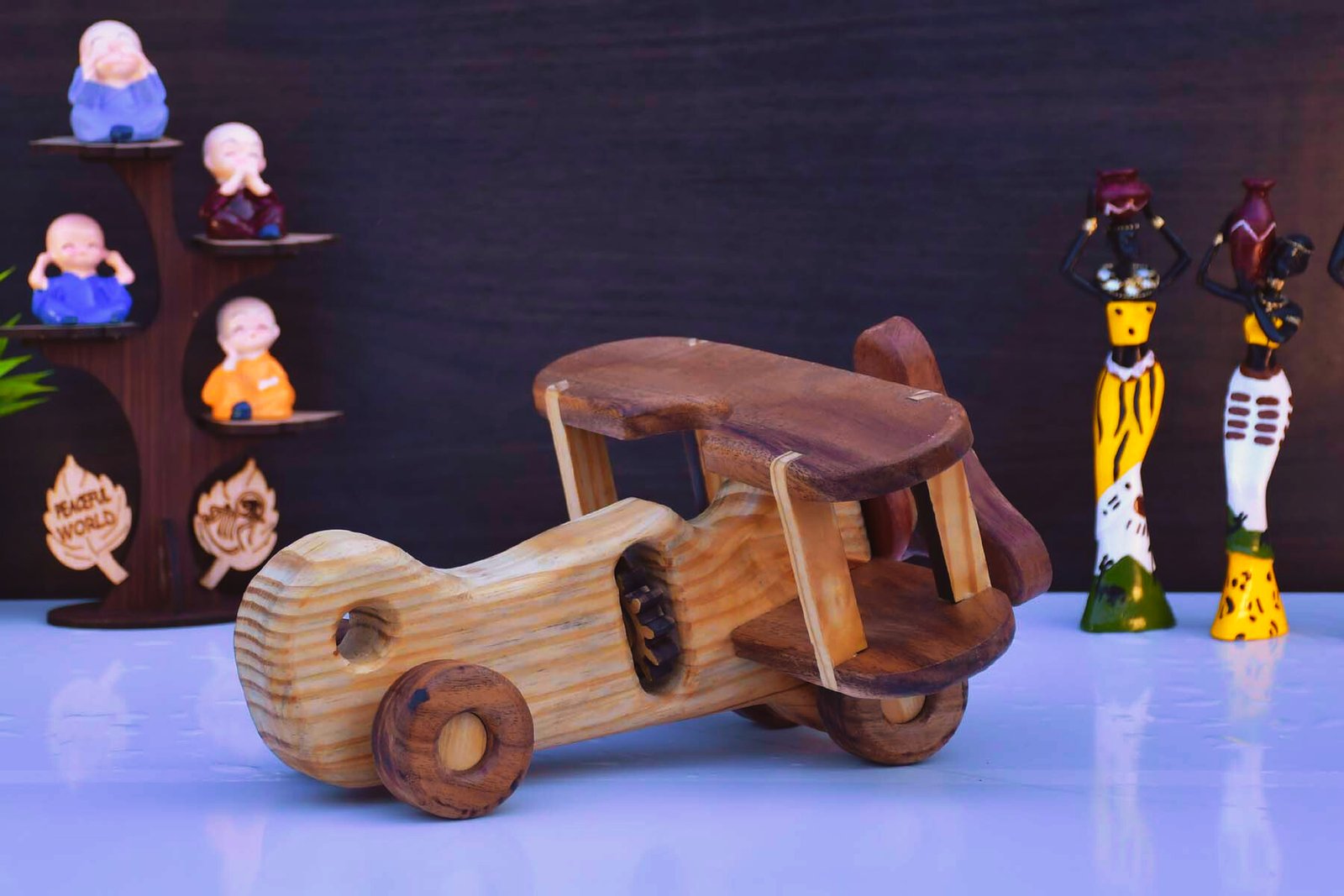 Handmade from high-quality, durable wood, this airplane combines simplicity and elegance. The natural finish highlights the grain of the wood, ensuring that each piece is unique. Its sturdy build makes it suitable for daily play, while the thoughtful design ensures safety for children.