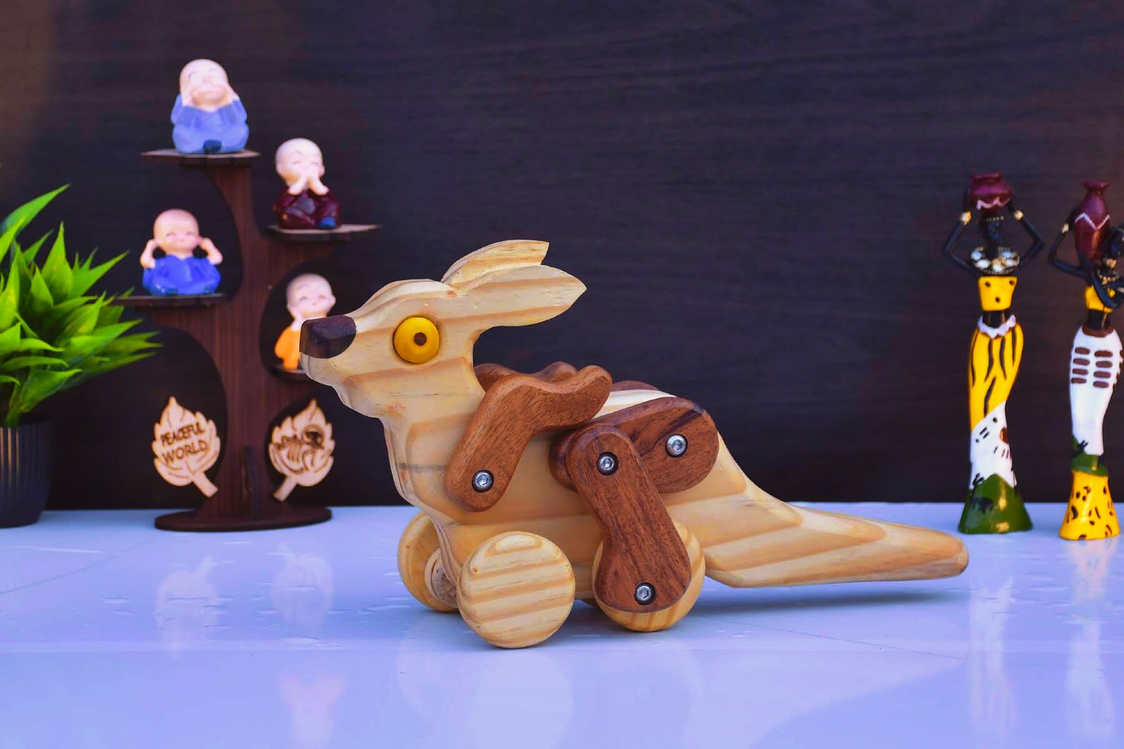 Made from durable and eco-friendly materials, the Wooden Kangaroo not only enhances your decor but also aligns with sustainable values. Its sturdy construction ensures it remains a cherished piece for years to come.