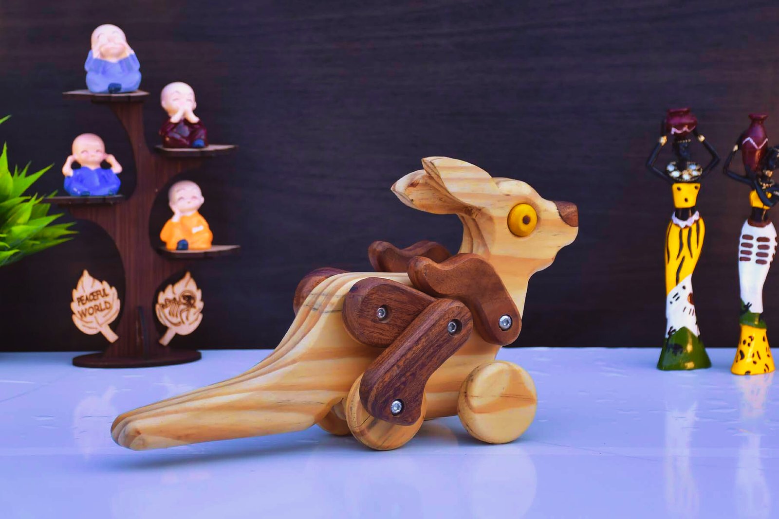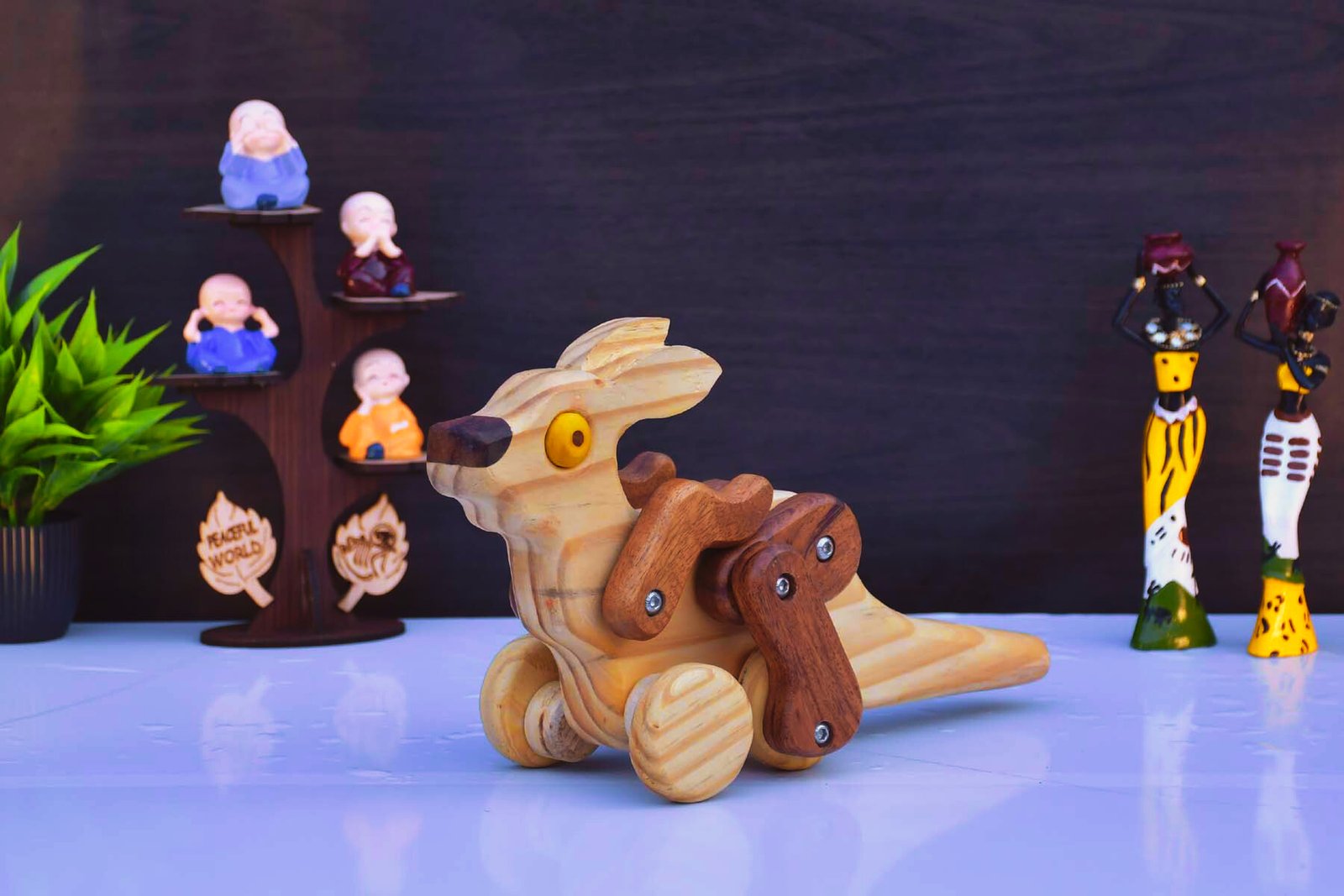 This Wooden Kangaroo seamlessly blends with various interior styles, from modern minimalism to rustic chic. Place it on your shelf, desk, or side table to infuse warmth and character into your space. Its timeless design makes it a perfect conversation starter or gift.